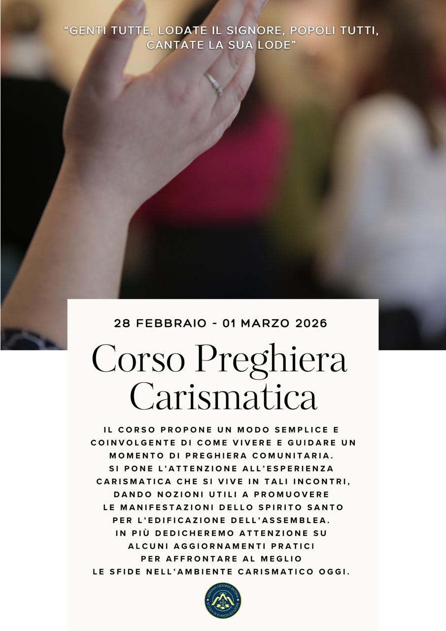 Il corso ti fa scoprire un modo semplice e coinvolgente di come vivere e guidare un incontro di preghiera in modo comunitario. Si pone l’attenzione all’esperienza carismatica che si vive nella preghiera comunitaria, dando nozioni utili a far fluire le manifestazioni dello Spirito Santo per l’edificazione dell’assemblea.